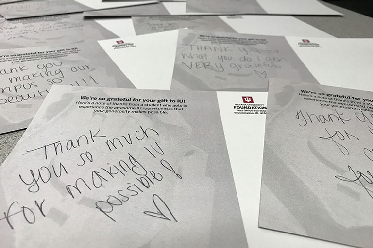 All the quotes on this page come from notes written by IU students on Thank a Donor Day. They represent just a small fraction of our gratitude for all that you make possible at IU every day.